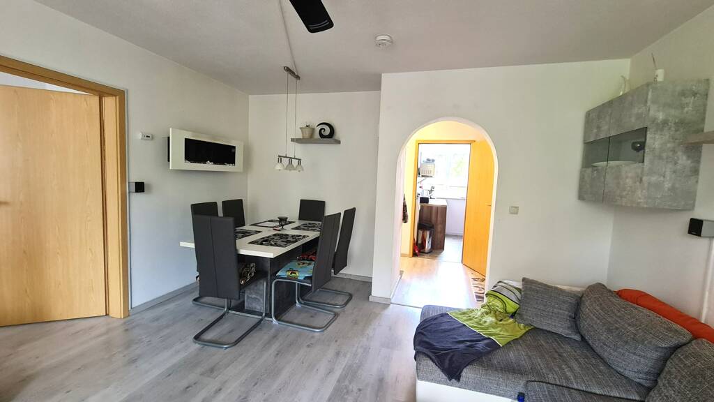 Die Wohnung besteht aus insgesamt drei Zimmern, darunter zwei Schlafzimmer, ein Wohn-/Esszimmer, eine Küche und ein Badezimmer mit Badewanne. Der offene Wohn- und Essbereich bietet ausreichend Platz für ein gemütliches Beisammensein.