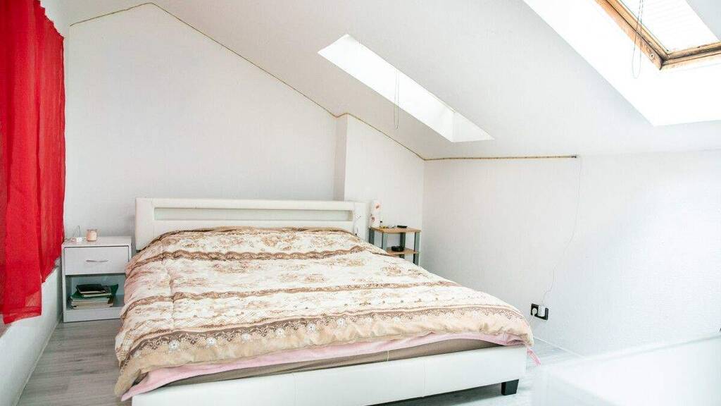 Die zweite Wohneinheit erstreckt sich über das zweite Obergeschoss und das Dachgeschoss. Die rund 65 Quadratmeter große Maisonettewohnung bietet durch Dachschrägen und eine offene Raumaufteilung ein besonderes Wohnambiente. Das Badezimmer wurde 2017 modernisiert, 2018 kam eine neue Zwischenwand hinzu, und der Küchenboden wurde erneuert.