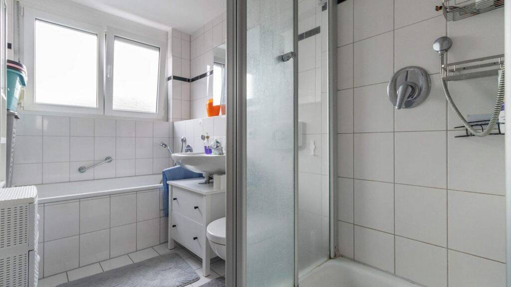 Neben drei gut geschnittenen Schlafzimmern verfügt die Wohnung über ein modernes Badezimmer mit Dusche und Badewanne sowie ein separates Gäste-WC - ein Plus an Komfort im Alltag. Große Fensterflächen sorgen für viel Tageslicht und eine freundliche Atmosphäre in allen Räumen.