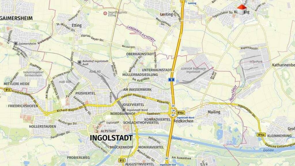* 01 min / ca. 0,5 km Lebensmittel * 02 min / ca. 0,7 km Restaurant * 02 min / ca. 0,5 km Kindergarten * 02 min / ca. 0,9 km Mittelschule * 02 min / ca. 0,9 km Gymnasium * 02 min / ca. 0,9 km Realschule * 04 min / ca. 1,4 km Tankstelle * 07 min / ca. 2,9 km Ingolstadt * 09 min / ca. 4,2 km Autobahn * 50 min / ca. 75 km München