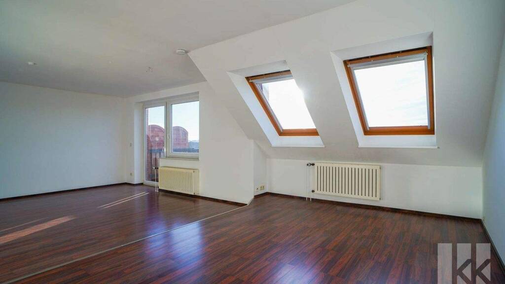 Der Wohn- und Essbereich erstreckt sich über zwei Ebenen und vermittelt ein großzügiges Raumgefühl. Große Fenster sorgen für viel Tageslicht und eine freundliche Atmosphäre. Von hier aus gelangen Sie direkt auf die Dachterrasse, die dank ihrer Lage einen beeindruckenden Weitblick über die Stadt bietet - ein echtes Highlight für sonnige Nachmittage und entspannte Abendstunden.