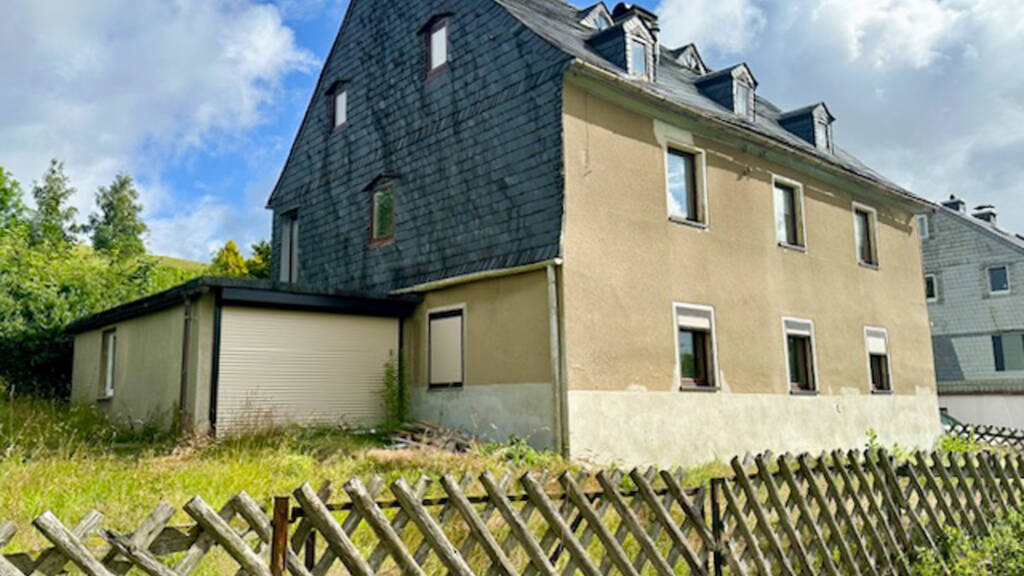 Zum Verkauf steht ein um 1924 massiv erbautes Zweifamilienhaus in schöner Ortslage von Gelenau mit einer Wohnfläche von ca. 205 m². Das Haus hat genügend Platz für Ihre Familie, auch als Mehrgenrationenhaus mit einer separaten Wohnung im Erdgeschoss. Durch seine Größe bietet das sanierungsbedürftige Haus dem zukünftigen Eigentümer viel Potential und Möglichkeiten beim Ausbau. Für eine Komplettsanierung wurden im Haus schon einige Vorarbeiten geleistet, wie zum Beispiel eine Beräumung und Entkernung, Entsorgung der aspesthaltigen Fassadenverkleidung am Giebel sowie die Fällung von übergroßen Nadelbäumen auf dem Grundstück. Die Gesamtgrundstücksgröße beläuft sich auf ca. 1.300 m² mit einem Gartenbereich, welcher sehr schön angelegt werden kann. Hier können Sie Feierabends oder am Wochenende in ruhiger Natur Erholung vom Alltag finden. Weiterhin erwerben Sie noch eine Doppelgarage mit Rolltor und ausgebautem Dachboden als Lagerfläche. Sanierungs- bzw. Renovierungsarbeiten sind bei diesem Objekt notwendig und handwerkliche Fähigkeiten vorteilhaft.