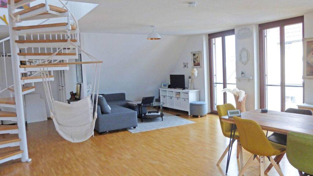 Diese Wohnung ist ideal für Stadtliebhaber, die das Besondere suchen: modernes Wohnen auf zwei Ebenen, zentrale Lage und ein einzigartiger Ausblick.
