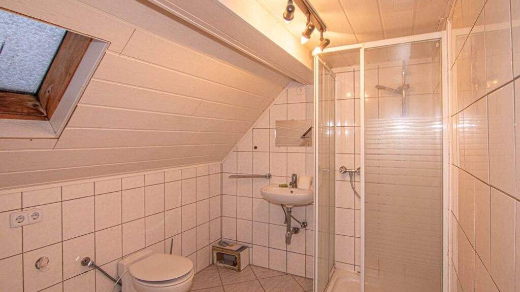 Darüber der teilweise ausgebaute Dachboden und darüber ein Spitzboden.