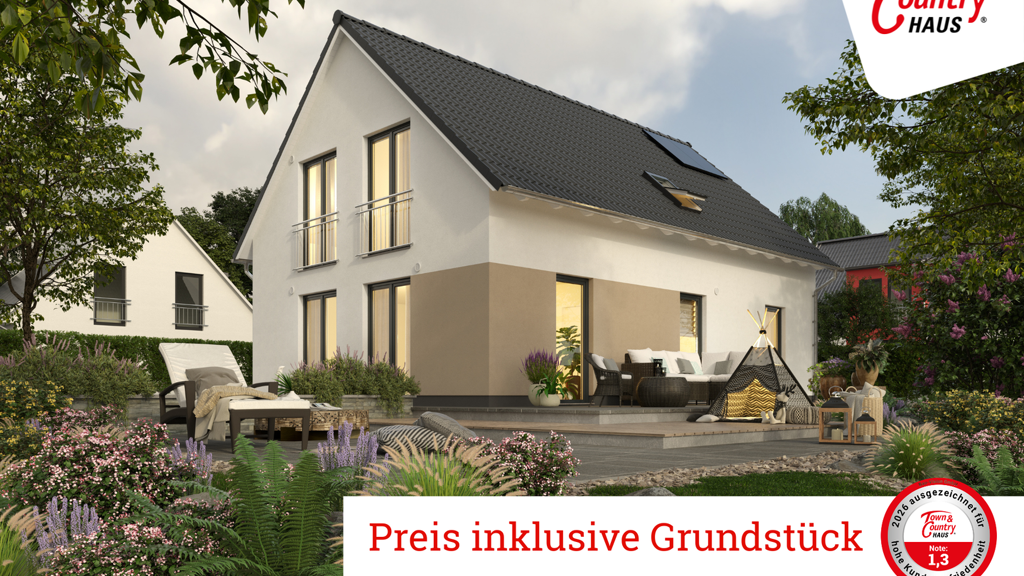*Baunebenkosten (z. B. für Hausanschlüsse, Außenanlagen, Behördengebühren oder Vermessung sowie Sonderwünsche) sind nicht im genannten Preis enthalten und werden individuell je nach Grundstückssituation kalkuliert.
