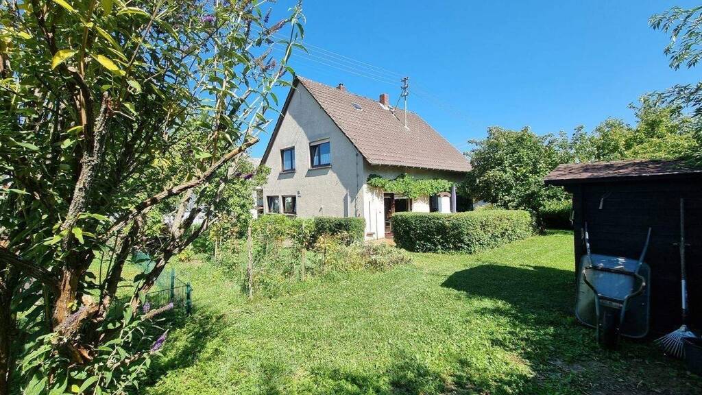 Die Immobilie wurde 1962 in Massivbauweise errichtet und ist komplett unterkellert. Dieses Objekt befindet sich in einem gepflegten Zustand und verfügt über eine innenliegende Garage. Das Dach des Hauses ist ein Pfettendach mit Tonpfanneneindeckung. Die Fassade ist verputzt und gestrichen. Das Haus verfügt über ca. 195 m² Wohnfläche, welche sich wie folgt aufteilt: Flurbereich, Wohnküche ( renoviert 2015), Essbereich, Wohnbereich mit Ausgang auf Terrasse und in den Garten, Bad (2015) und Schlafzimmer. Über eine Betontreppe, welche mit Teppich belegt wurde, gelangt man in das Obergeschoss. Dieses ist aufgeteilt in Flur, vier Zimmer, Balkon und Bad (2010). Im Keller befindet sich ein Technikraum, Hobbyraum und diverse andere Räume. Das Grundstück ist voll erschlossen und die Erschließung wurde bereits komplett bezahlt.