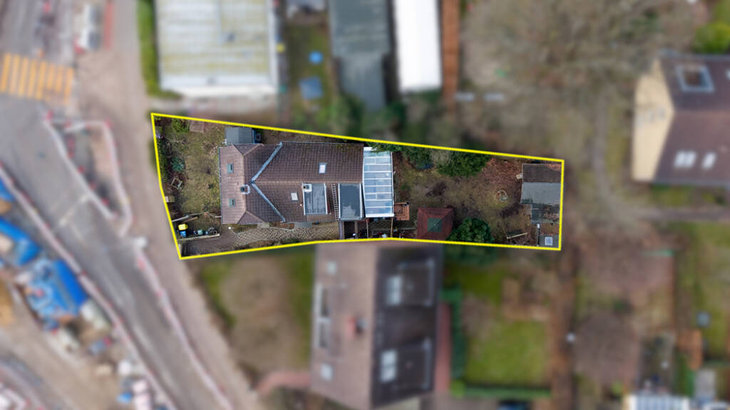 - Hinweis: Das Grundstück wird derzeit durch einen Altbestand (Einfamilienhaus) mit ca. 160 m² Wohnfläche und Kriechkeller (unter der Küche ca. 15 m²) genutzt