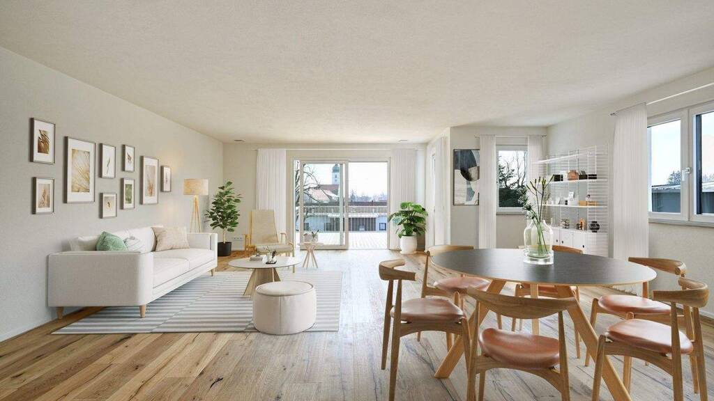 Wohnraum ist mehr als ein Dach über dem Kopf: Er ist Ausdruck von Lebensqualität und prägt das Wohlbefinden jedes Einzelnen. In Zusammenarbeit mit einem erfahrenen Architekturbüro wurde von der LaVilla-Bau GmbH das Projekt "Sieghart 20" im Zentrum von Ebersberg errichtet und im Mai 2025 fertiggestellt. Die gut durchdachten 2 – 4 Zimmer Wohnungen - wahlweise auch über 2 Etagen - mit einer Größe von ca. 76 – 132 m² zeichnen sich durch flexibel zu bewohnende Grundrisse aus. Die Wohneinheiten verteilen sich auf ein Haupthaus mit 11 Wohneinheiten und einer Tiefgarage sowie einem Rückgebäude mit nur 3 Wohneinheiten. Exklusive Innenausstattung, hochwertige Materialien und lichtdurchflutete Räume erfüllen höchste Ansprüche an Qualität und bieten Platz für individuelle Wohnkonzepte und Lebensstile von Singles, Paaren sowie kleinen als auch großen Familien. Die nach Süden ausgerichteten Balkone, Dachterrassen und Terrassen sind durch niveaugleiche Schiebetüren stufenlos zu erreichen und geben den offen gestalteten Wohn- Essbereichen eine besondere Helligkeit und Großzügigkeit. Ein weiteres Augenmerk wurde auf ausreichende Stauräume gelegt. Darüber hinaus verfügt jede Wohnung über einen separaten Hauswirtschaftsraum für Waschmaschine und Trockner. Intelligentes Heizungs- und Energiekonzept mit modernsten Luft-Wärmepumpen und großen Pufferspeichern. Zum Abdecken von etwaigen Spitzenlasten im Winter, wenn die Wärmepumpe an Effektivität einbüßt und als redundantes System wurde zusätzlich eine Gas-Brennwerttherme eingebaut. Durch eine eigene 24 kWp große PV-Anlage mit 16,8 kWh Batteriespeicher wird die Stromversorgung für die Heizung und den Allgemeinstrom unterstützt. Die Warmwasserbereitung erfolgt wohnungsweise über Frischwasserstationen zur bedarfsgerechten Erzeugung von hygienischem Warmwasser und Energieeinsparung durch Vermeidung von Bereitschaftsverlusten.