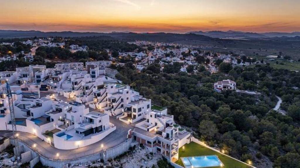 In der charmanten Umgebung von San Miguel de Salinas bieten diese Villen einen exklusiven Lebensstil in einer der attraktivsten Regionen der Gegend. Insgesamt 17 Immobilien, entworfen, um den Bedürfnissen von Menschen gerecht zu werden, die Komfort und Eleganz suchen. Die Nähe zum Flughafen, nur 26 Kilometer entfernt, erleichtert Zugang und Konnektivität und macht sie zu einer idealen Option sowohl als Wohnsitz als auch für Urlaubsfluchten. Die Villen sind in Konfigurationen mit 3 oder 4 Schlafzimmern sowie 2 oder 3 Bädern erhältlich und richten sich nach unterschiedlichen Familienbedürfnissen. EXTERIEUR Das äußere Design dieser Villen in San Miguel de Salinas ist darauf ausgelegt, das mediterrane Klima maximal zu genießen. Jede Villa verfügt über eine Privatterrasse, perfekt zum Entspannen im Freien. Zusätzlich gibt es ein Solarium, das zusätzlichen Raum für Freizeit und Erholung bietet. Die Villen verfügen über einen Privatpool, ideal zum Erfrischen an heißen Sommertagen. Die Pergola verleiht dem Ganzen eine Note von Eleganz und Funktionalität und bietet Schatten sowie einen gemütlichen Raum für Essen im Freien oder einfach zum Entspannen. INNENRAUM Das Interieur der Villen ist auf Komfort und Funktionalität ausgerichtet. Die Keramikböden verleihen eine moderne Note und sind leicht zu pflegen. Die Villen sind klimatisiert und vorinstalliert, um das ganze Jahr über ein angenehmes Ambiente zu gewährleisten. Die Küche ist mit Geräten ausgestattet, was das tägliche Leben vom ersten Tag an erleichtert. Die Einbauschränke bieten viel Stauraum und halten Ordnung. Zudem sorgt der Gegensprechanlage für zusätzliche Sicherheit und Komfort. GEMEINSCHAFTSBEREICHE Die Gemeinschaftsbereiche dieses Residenzkomplexes in San Miguel de Salinas sind darauf ausgelegt, eine sichere und angenehme Umgebung für die ganze Familie zu schaffen. Die Gemeinschaftsgärten bieten eine grüne Fläche zum Spazierengehen und Naturgenießen. Der Gemeinschaftspool ist ein idealer Ort zum Socializen und Genießen des guten Wetters. Für die Kleinen gibt es einen Spielbereich, der Spaß und Unterhaltung garantiert. Zusätzlich sorgt der Gemeinschaftsparkplatz dafür, dass immer Platz für Bewohner und deren Besucher vorhanden ist. SAN MIGUEL DE SALINAS San Miguel de Salinas, in der Provinz Alicante gelegen, ist ein ruhiges Bergdorf mit Panoramablicken auf die Umgebung. Obwohl es kein Massentourismusziel ist, liegt sein Charme in der ländlichen Atmosphäre und der Nähe zu beliebten Küstengebieten. Der Tourismus in San Miguel de Salinas konzentriert sich auf seine natürliche Umgebung, ideal zum Wandern und für Outdoor-Aktivitäten, mit Panoramablicken auf die Mittelmeerküste und die Lagune Salada de Torrevieja. Der Lebensstil in San Miguel de Salinas ist ruhig und in das ländliche Leben verwoben. Die Bewohner schätzen die Ruhe, das gemeinschaftliche Miteinander und lokale Traditionen. Die Gastronomie basiert auf typischen mediterranen Gerichten und lokalen Produkten. San Miguel de Salinas bietet eine ruhige, ländliche Umgebung für alle, die ein ruhiges Leben in einer natürlichen Umgebung suchen, mit einfachem Zugang zu kustennahen Touristenzielen an der Costa Blanca.
