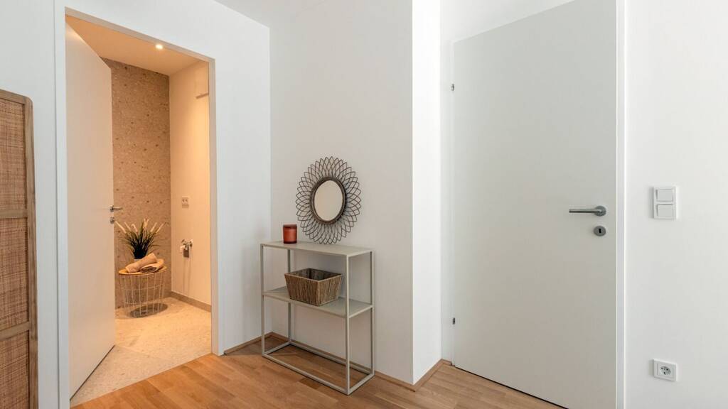 Die komfortabel konzipierten Eigentumswohnungen und Townhouses überzeugen mit vielfältigen Grundrissen und Größen, die für jede Lebensphase die perfekte Wohnlösung bieten. Feinste Eichenparkettböden und elegant ausgestattete Bäder schaffen ein Ambiente von zeitloser Eleganz und höchstem Wohnkomfort. Modernste Haustechnik sorgt für ein angenehmes Raumklima zu jeder Jahreszeit: Eine durch Fernwärme betriebene Fußbodenheizung sorgt für wohlige Wärme, während elektrisch steuerbarer Raffstores oder Rollläden Komfort und Privatsphäre auf Knopfdruck ermöglichen. In den Dachgeschosswohnungen runden hochwertige Klimaanlagen das exklusive Ausstattungspaket ab und bieten auch im Sommer ein stets erfrischendes Wohngefühl. Jede Wohneinheit verfügt über eine private Freifläche - ob Loggia, Balkon, Terrasse oder Garten - die den Wohnraum stilvoll ins Freie erweitert und einen Rückzugsort von besonderer Qualität schafft.