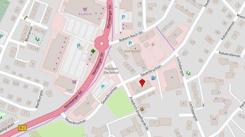 Der Standort innerhalb von Pegnitz liegt ebenfalls sehr günstig. Alle benötigen Einkaufsmöglichkeiten des täglichen Bedarfs sind fußläufig erreichbar. Den Marktplatz erreicht man bei einem gemütlichen Spaziergang ebenfalls in wenigen Minuten.