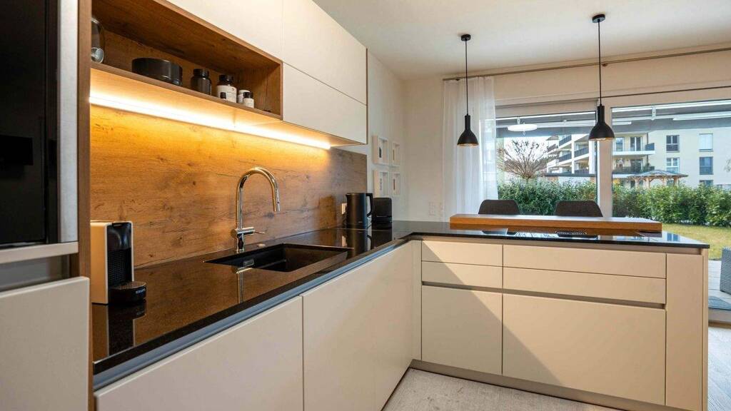 Herzstück der Wohnung ist der lichtdurchflutete Wohnraum mit hochwertiger DAN-Küche - modern, funktional und einladend zugleich.