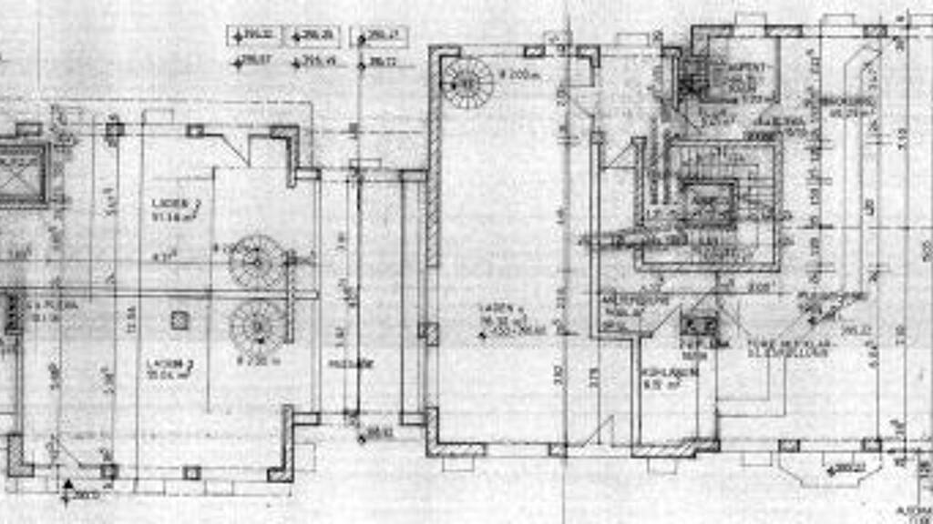 Im Erdgeschoss befinden sich Läden mit großen Schaufenstern. Sie sind überwiegend gefliest und mit Fußbodenheizung ausgestattet. In den abgehängten Decken sind Beleuchtungseinheiten integriert. Über Wendeltreppen sind die im Keller gelegenen Lagerräume erreichbar.