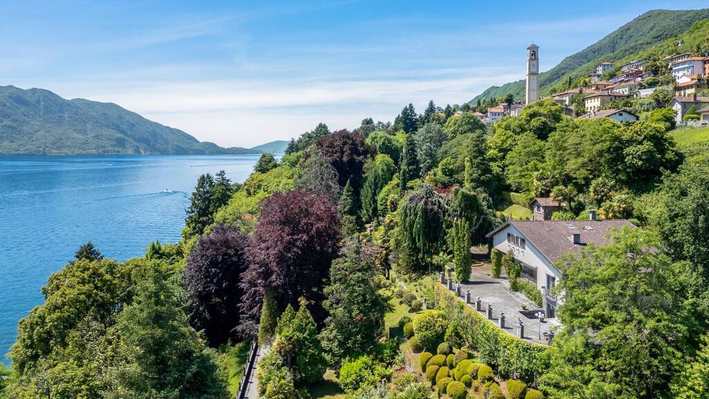 Elegante Villa zum Verkauf mit Park und Schwimmbad, auf dem ersten Hügel von Oggebbio, nur wenige Schritte vom See entfernt.