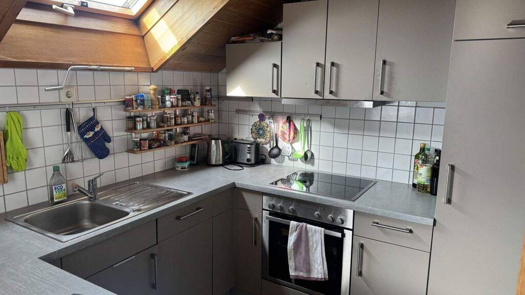 Wir vermieten in Lörrach Tumringen eine Maisonette-Wohnung Bj. 1989 mit Wohn/Esszimmer, ein großes Schlafzimmer, ein großes Bad und Küche. Die Einbauküche wurde 2016 eingebaut. Die Wohnung hat eine Loggia nach Süden (unverbaut) und ein Balkon nach Osten (Sonnenaufgang). Die Wohnfläche untere Ebene beträgt nach Berechnung des Architekten 69,61 qm, die Galerie hat 11,13qm, der Keller 7,05 qm Nutzfläche. Die Wohnung liegt im 3. Stock. Es gibt keinen Aufzug. Zur Wohnung gehört ein großzügiger Tiefgaragenstellplatz, der in der Kaltmiete inbegriffen ist. Die Wohnung liegt verkehrgünstig und in Nähe des neuen Zentralklinikum. 10 Minuten mit dem Auto oder 18 Minuten mit dem Rad auf dem Radweg an der Wiese entlang. Bushaltestelle im 600m Entfernung.
