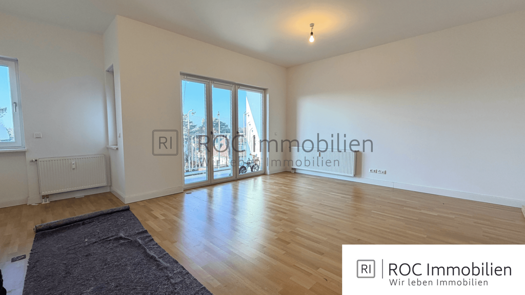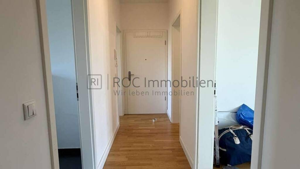 Über den Flur gelangen Sie zunächst linkerhand in das Schlafzimmer. Der weitere Verlauf führt in das großzügige Wohnzimmer, das durch seinen offenen Schnitt vielfältige Einrichtungs- und Nutzungsmöglichkeiten bietet. Von hier aus haben Sie direkten Zugang zum Balkon, der zusätzlichen Wohnkomfort bietet und zum Verweilen einlädt. Vom Balkon aus genießen Sie einen freien und schönen Blick über die umliegenden Häuser, was den Außenbereich besonders attraktiv macht.