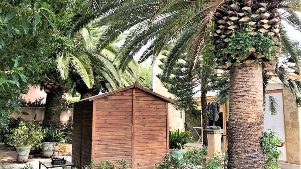 Auf der ersten Etage befinden sich 1 Schlafzimmer mit Bad en Suite und Zugang zu einer Terrasse mit sektakulärer Aussicht. Rund um das Haus gibt es eine Terrasse, von der aus man im Eingangsbereich einen Blick auf das Meer und im hinteren Bereich Sicht auf den Gartenbereich mit vielen Pflanzen und einer großen Palme geniesst.