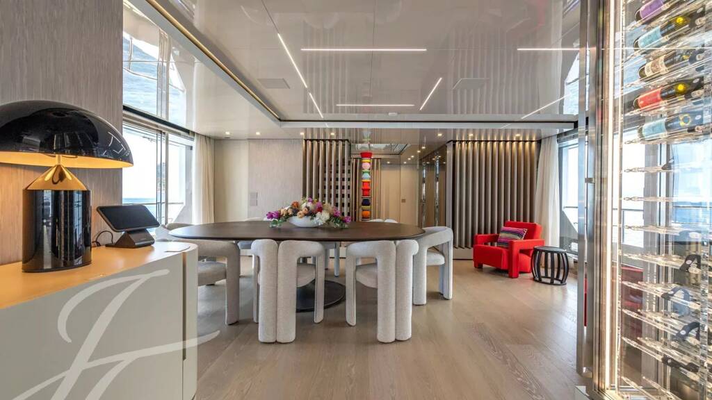 RSY C.129 is the second hull of the RSY 38 Exp series built by Rosetti Superyachts. The sister-ship of Emocean was completed in May 2024 and she is ready for immediate delivery to her new owner.The 38m RSY C.129 is a steel-hulled superyacht with an impressive 5,000nm range, consuming just 80 litres of fuel per hour at 11 knots. These remarkable credentials make her an ocean-going superyacht with enhanced eco-friendly factors.RSY C.129 has a modern exterior profile with sections of angular glass intersecting her lines. She was designed by Hydro Tec and offers a carefully considered layout with 350 square metres of deck space.RSY C.129's large volume of 432 GT translates into a spacious interior that adopts a neutral colour palette, resulting to a light and bright interior that can be easily personalised. Another example of details that went into RSY C.129's design and build - the saloon sofas have been custom built at different heights so as to avoid obstructing the windows and influx of natural light.Along with the saloon lounge, other interior spaces and highlights include a formal dining area and 150-bottle crystal wine cellar, as well as a sky lounge with a bar and 75-inch cinema screen.RSY C.129 has accommodation for 12 guests. There is a full-beam master suite on the main deck, complete with an owner's office, walk-in wardrobe, en-suite bathroom, and a private balcony accessed via floor-to-ceiling sliding doors. The guest accommodation is on the lower deck and comprises two VIP cabins and two double guest cabins.Crew areas are designed for long range cruising in mind, and the accommodation for the yacht's seven crew is both spacious and well thought out. A comfortable en suite Captain's cabin is located behind the bridge, with a further 3 en suite twin cabins on the lower deck. A dedicated cold storage area and a separate laundry ensure smooth operations even during extended cruising.The deck spaces are designed for entertaining and relaxation, with seating areas to aft on both the main deck and upper deck. In here, one can also find a beautifully designed crane and storage for the main tender.The sundeck is RSY C.129's crowning glory, featuring a Jacuzzi along with a bar, a large al fresco dining area and cushioned sunpads.Her beach club fosters connectivity with the sea in complete comfort, thanks to a well-appointed dayhead, whilst also offering plenty of storage for water toys.Capable of extended voyages in supreme comfort and luxury, it is no surprise that RSY C.129 is a multi-award-winner, including the coveted World Superyacht Award in 2022.This is a great opportunity to acquire a new global cruiser, with proven ocean-crossing capabilities and charter credentials.