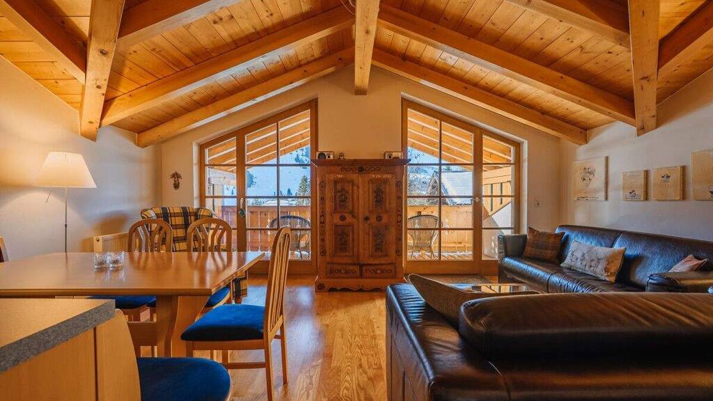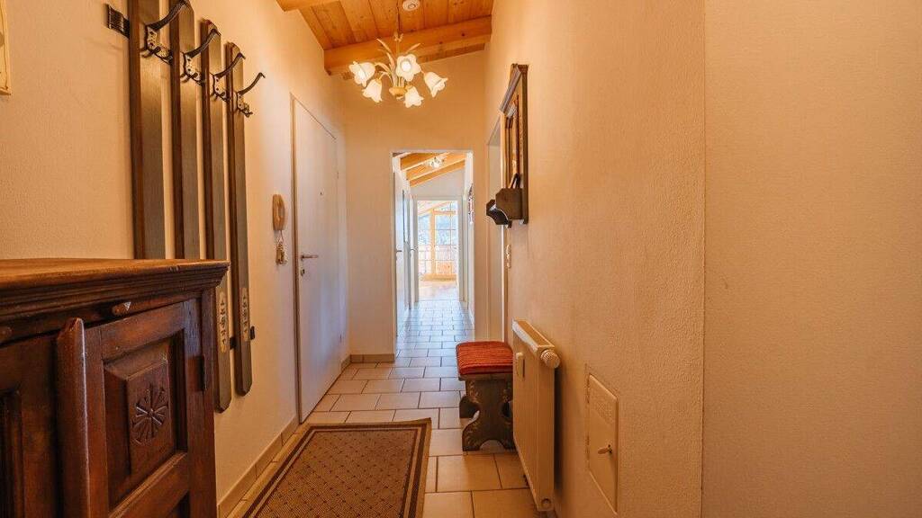 Diese hochwertige Dachgeschosswohnung in Hinterthal ist eine echte Rarität: offiziell als Zweitwohnsitz gewidmet und damit ideal als private Ferienimmobilie in den Bergen. Direkt im Skigebiet Hochkönig gelegen, bietet sie den perfekten Ort für regelmäßige Auszeiten - fernab vom Alltag, nah an der Natur. Über das gepflegte Treppenhaus erreicht man die eigene Etage mit privatem Wohnungseingang. Die offene Holzbalkendecke verleiht dem Wohnbereich eine warme, alpine Atmosphäre und sorgt gemeinsam mit den Dachschrägen für ein großzügiges Raumgefühl und praktischen Stauraum. Die Wohnung umfasst einen hellen Wohnbereich, drei Schlafzimmer sowie zwei Badezimmer - eines mit Badewanne, eines mit Dusche, beide mit WC. Vom Wohnzimmer aus gelangt man auf den Balkon mit Blick auf die umliegende Bergwelt. Zwei der Schlafzimmer verfügen zusätzlich über einen zweiten Balkon mit Ost-Ausrichtung - ideal für sonnige Morgenstunden in den Bergen. Ein Abstellraum, ein Garagenstellplatz und ein großzügiger Kellerraum bieten viel Platz für Skier, Fahrräder und Sportequipment. Ergänzt wird das Angebot durch eine gemeinschaftliche Waschküche und einen Skiraum.