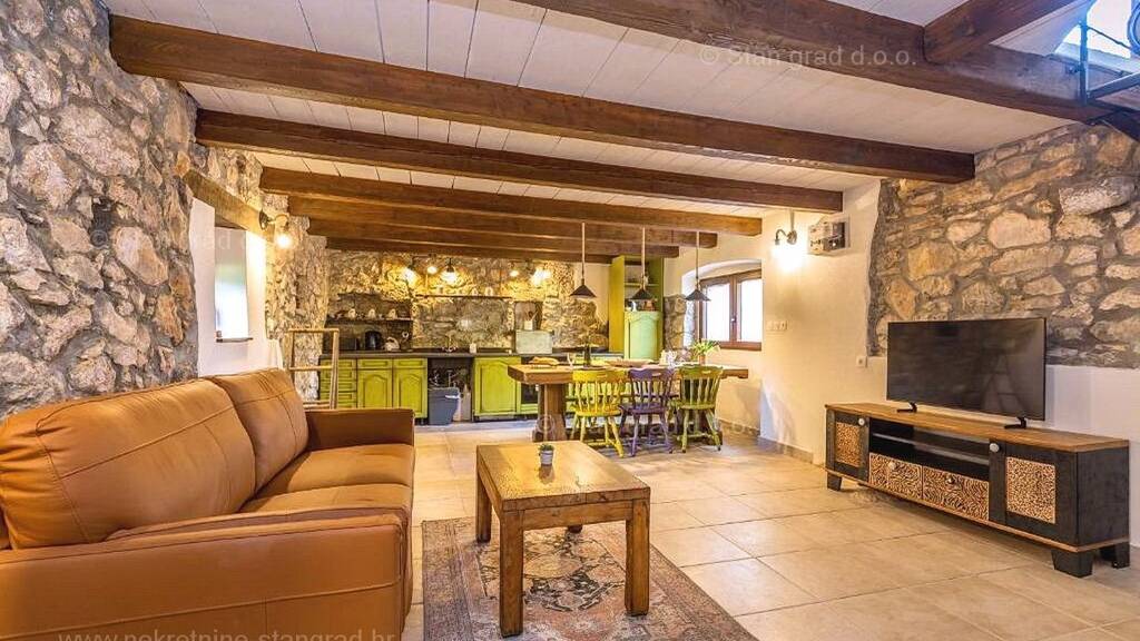 Aus dem Immobilienangebot der Agentur Stan Grad Immobilien im fortgeschrittenen Kvarner-Gebiet wurde ein romantisches Touristenhaus in einem attraktiven Touristenziel und der Perle der Adria, auf der Insel Krk, ausgewählt. Das Anwesen befindet sich in der Nähe der Stadt Krk, an einem Ort, der Genuss im Grünen der Natur bietet. Strukturell handelt es sich um ein zweistöckiges Haus. Das wunderschön eingerichtete Haus besteht aus insgesamt 2 räumlich nutzbaren Etagen. Die Gesamtfläche dieses renovierten Steinhauses beträgt 80 m2. Dieser Bereich umfasst ein Wohnzimmer und eine Küche, ein Badezimmer und eine überdachte Terrasse im Erdgeschoss und im ersten Stock zwei Schlafzimmer, ein Badezimmer und eine Dachterrasse mit Whirlpool und einer Sonnenterrasse mit wunderschönem Blick auf das Meer. Der gepflegte Innenbereich der Immobilie ist komplett mit hochwertigen Möbeln und allen notwendigen technischen Geräten ausgestattet. Der Hofbereich des Hauses bietet die Möglichkeit eines bequemen Parkens für ein Auto. Zusätzlich zu den vorherigen Eigenschaften ist es wichtig zu erwähnen, dass das Haus einen schönen Blick auf das Meer und die Küste hat. Dieses Haus ist Eigentum einer natürlichen Person und die Eigentumsübertragung unterliegt der Grunderwerbsteuer in Höhe von 3 %. Der Verkäufer dieses Hauses garantiert eine vollständige und ordnungsgemäße Dokumentation und eine einfache Übergabe der Immobilie an den Käufer. Bei diesem großen Schritt steht Ihnen Ihr Partner Stan Grad Immobilien mit der nötigen Unterstützung und Sicherheit beim Immobilienkauf zur Seite. Neben einer professionellen Besichtigung und Präsentation der Immobilie und ihres rechtlichen Status unterstützen die freundlichen Mitarbeiter unserer Agentur den Käufer der Immobilie gerne bei der Eigentumsübertragung und der Übertragung der Nebenkostenabrechnungen auf seinen Namen.