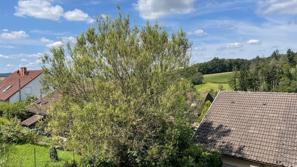 In herrlicher Wald-/Feldrandlage und Hanglage wurde dieses 4-Parteien-Haus 1976 auf 1.296 m² erbaut und 1994 um zwei Wohnungen im Dachgeschoss erweitert. In diesem Zuge wurde auch zwischen den Dachsparren und auf der Dachbodendecke gedämmt.