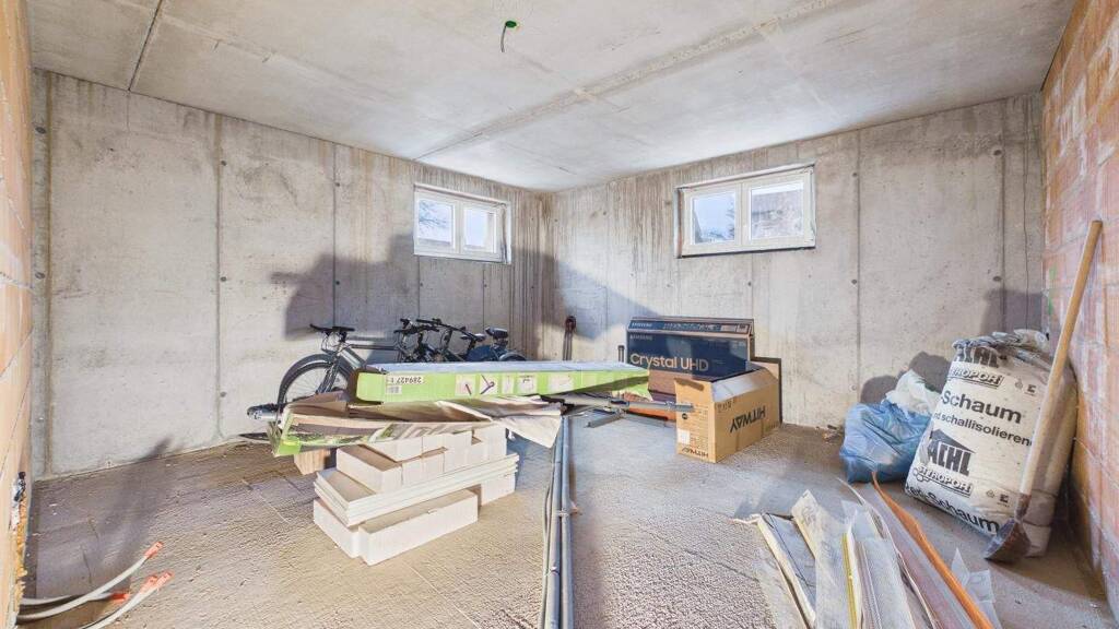 Zusätzlich bietet das 122 m² große Kellergeschoss enormes Ausbaupotenzial. Derzeit im Rohbauzustand, kann dieser Bereich fertiggestellt und in eine vollwertige dritte Wohneinheit umgewandelt werden. Nach Fertigstellung würde die Gesamtwohnfläche rund 300 m² betragen - ein echtes Raumwunder.