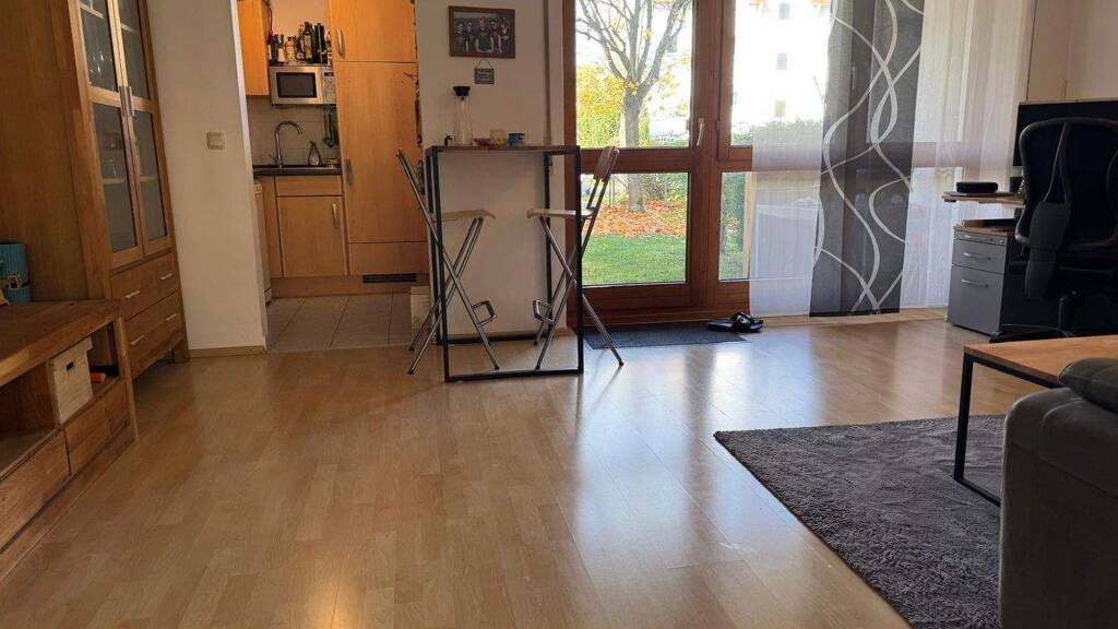 Das Herzstück der Wohnung ist das lichtdurchflutete Wohnzimmer, welches in Wohn- und Essbereich gegliedert werden kann. Die großzügigen Fenster sorgen für viel Tageslicht und Zugang zur überdachten Terrasse mit Westausrichtung und Garten. Die vom Wohnraum abgetrennte Küche bietet viel Platz für Stauraum. Das Schlafzimmer hat ausreichend Platz und läßt sich gut einrichten. Zeitlos sandfarben gehalten präsentiert sich das innenliegende Bad mit einer Badewanne, Waschbecken und WC. Der Flur bietet ausreichend Stellfläche für eine Garderobe sowie ein Schuhregal. Ausgestattet ist die Wohnung überwiegend mit hellem Laminatboden und teils mit Fliesen. Rolläden sind selbstverständlich vorhanden, ebenso eine Sprechanlage. Zur Wohnung gehört ein Einzellstellplatz in der Tiefgarage und ist im Kaufpreis enthalten. Das zugehörige Kellerabteil hat ca. 8 m², auch steht ein allgemeiner Wäscheraum und ein Fahrradstellraum zur Verfügung