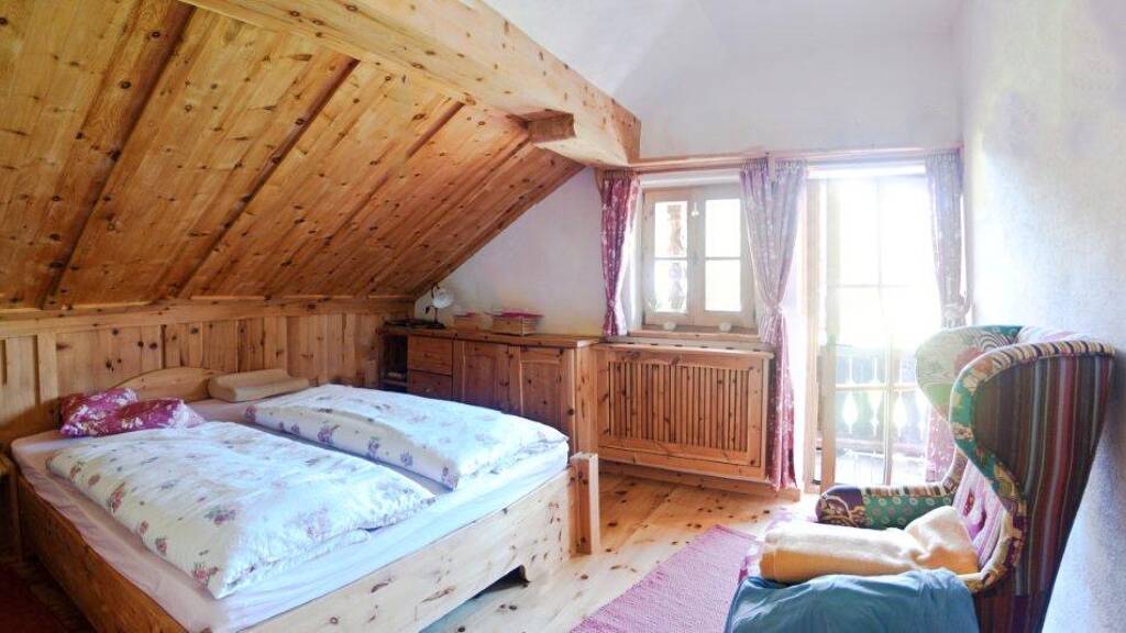 Das 400 Jahre alte Troadkastl aus Osttirol bietet im Obergeschoss ein Schlafzimmer in Zirbenholz mit Kanonenofen aus Hamburg, während das Erdgeschoss als Meditationsraum mit Fußbodenheizung dient. Altholz und Naturstein verleihen diesem Gebäude einen einzigartigen, unverwechselbaren Charakter.