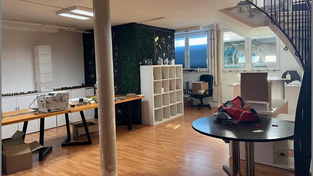 Eine Grundfläche von ca. 146 m² ist aktuell auf zwei Etagen aufgeteilt (EG+UG). Die Räume teilen sich wie folgt auf: Wir haben einen großen Empfangs- und Verkaufsbereich im Erdgeschoss mit ca. 96 m². Über eine offene Kunststeintreppe hinab haben wir im Untergeschoss weitere ca. 50m², die ebenso als Verkaufs- oder Besprechungsraum sowie als Lager- oder Schulungsraum genutzt werden können. (...)