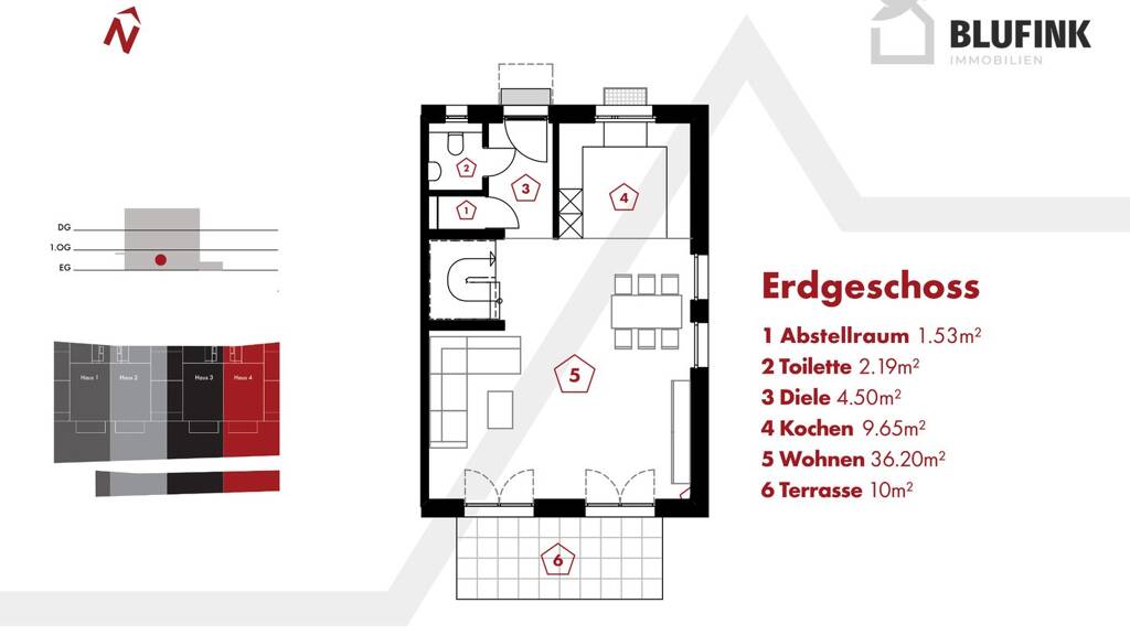 Offener Wohnküchenbereich, Abstellraum & Dachstudio sowie Terrasse & Garten.