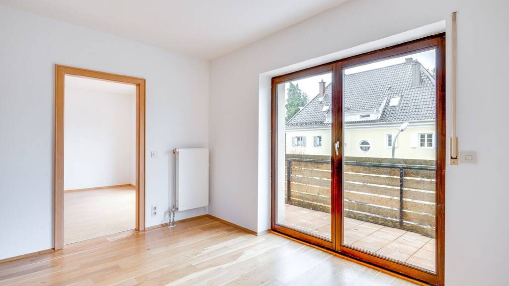 Die helle Wohnung befindet sich im Obergeschoss eines 3-Wohneinheiten-Hauses. Besonders angenehm ist der fast über die gesamte Hausbreite große, nach Süden ausgerichtete Balkon.