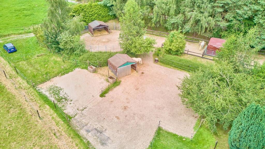 Die Hofanlage bietet ideale Voraussetzungen für die private Pferdehaltung: Ein Reitplatz mit den Maßen 19 × 48?Meter, ausgestattet mit Flutlichtanlage und massiver Umzäunung, ermöglicht flexibles Training. Für Ihre Pferde stehen fünf großzügige, helle Boxen mit beheizbaren Tränken, sehr große Paddockflächen mit Offenställen sowie angrenzende Weideflächen zur Verfügung. Das Scheunengebäude bietet nicht nur Platz für Heu- und Strohlagerung, sondern auch eine beheizte Sattelkammer.