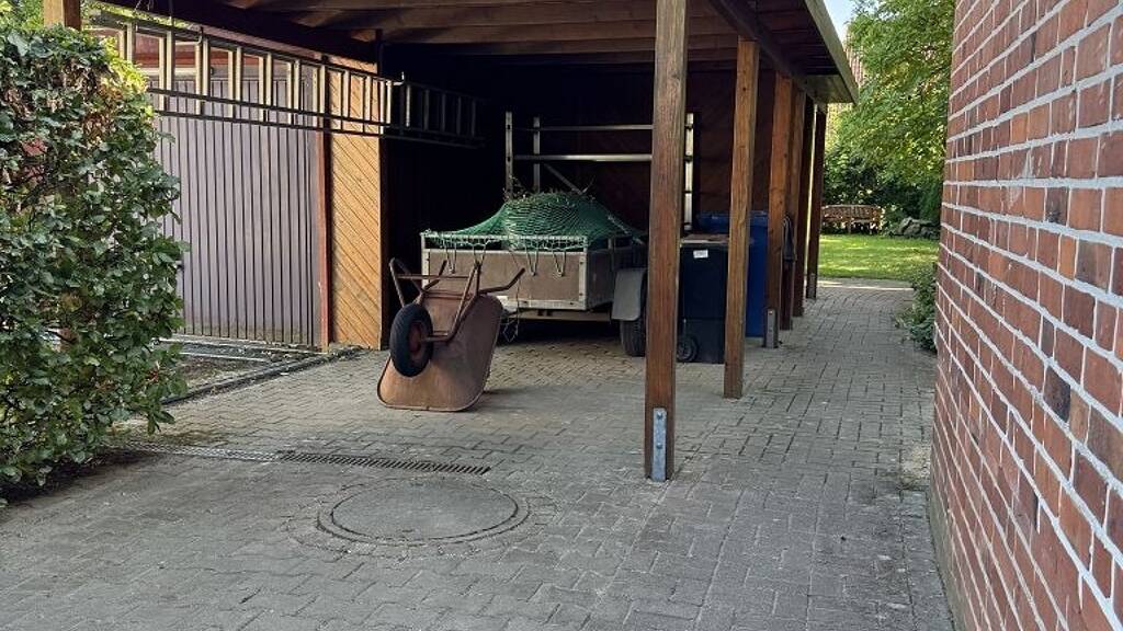 Zum Haus gehören ein Carportstellplatz mit angrenzendem Abstellraum sowie eine Satellitenanlage. Die Holzfenster unterstreichen den ursprünglichen, einfachen Charakter des Hauses. Insgesamt befindet sich die Immobilie in einem gepflegten, dem Baujahr entsprechenden Zustand und bietet Potenzial für Modernisierungen nach eigenen Vorstellungen.