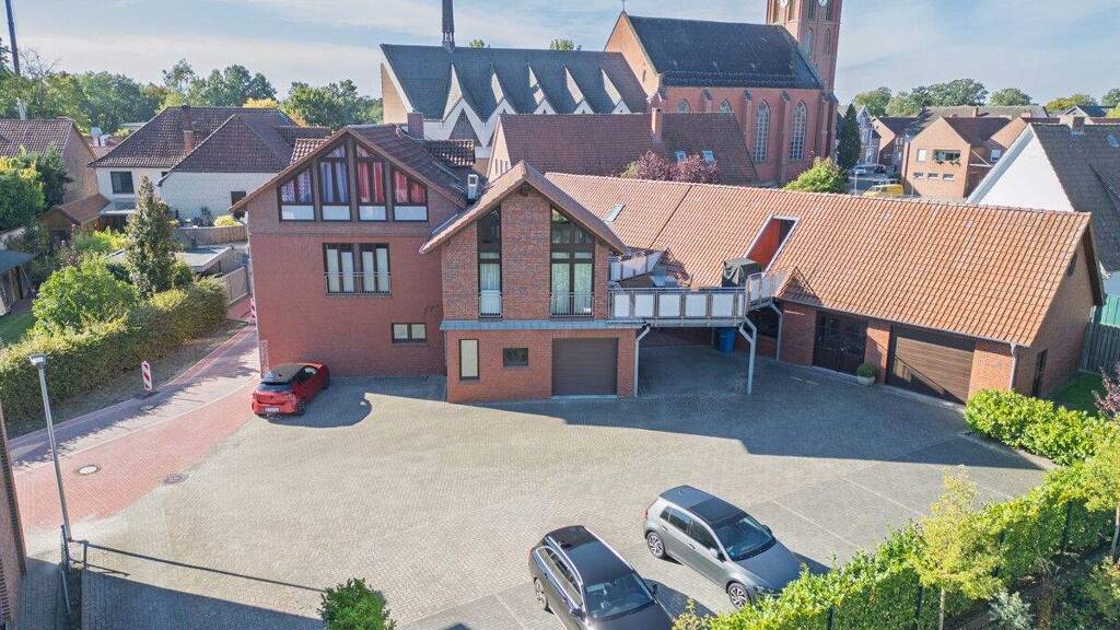 Ein gemischt genutztes Wohn- und Geschäftshaus mit einer Halle in Lastrup.