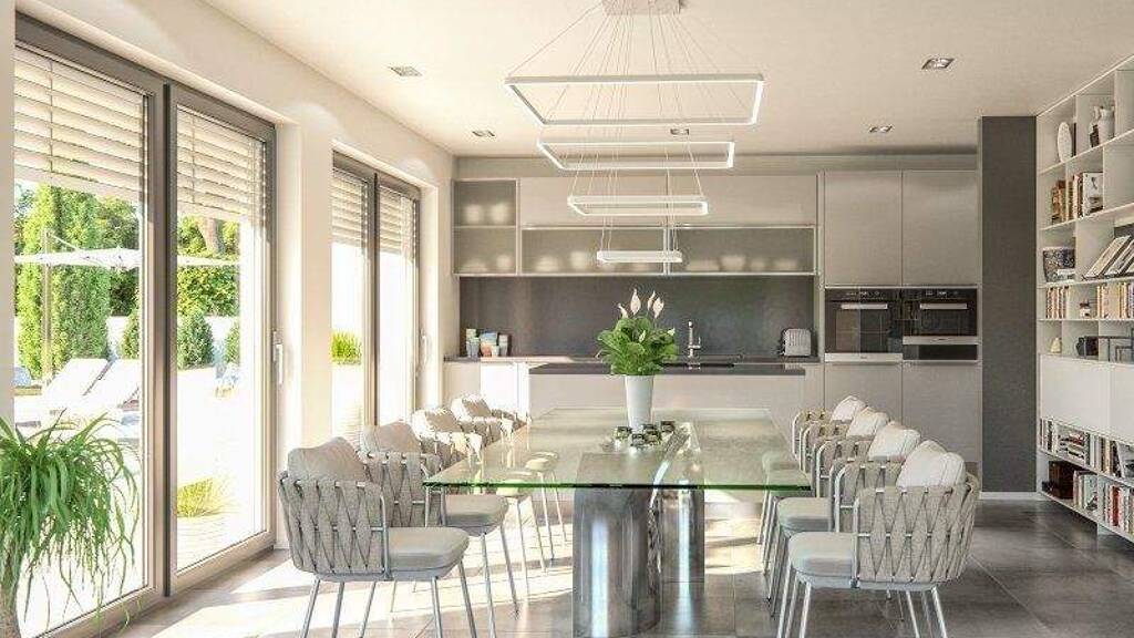 Mit einer Wohnfläche von fast 190 m² bietet "Victoria" beeindruckend viel Platz für die ganze Familie. Klare und großzügige Wohnräume, damit verbunden lange Sichtachsen im Haus, schaffen ein wohnliches, zugleich großartiges Lebensgefühl. Eine geradläufige Treppe und die offene Galerie im Obergeschoss nehmen die Formensprache der Außengestaltung auf und transferieren sie ins Innere.
