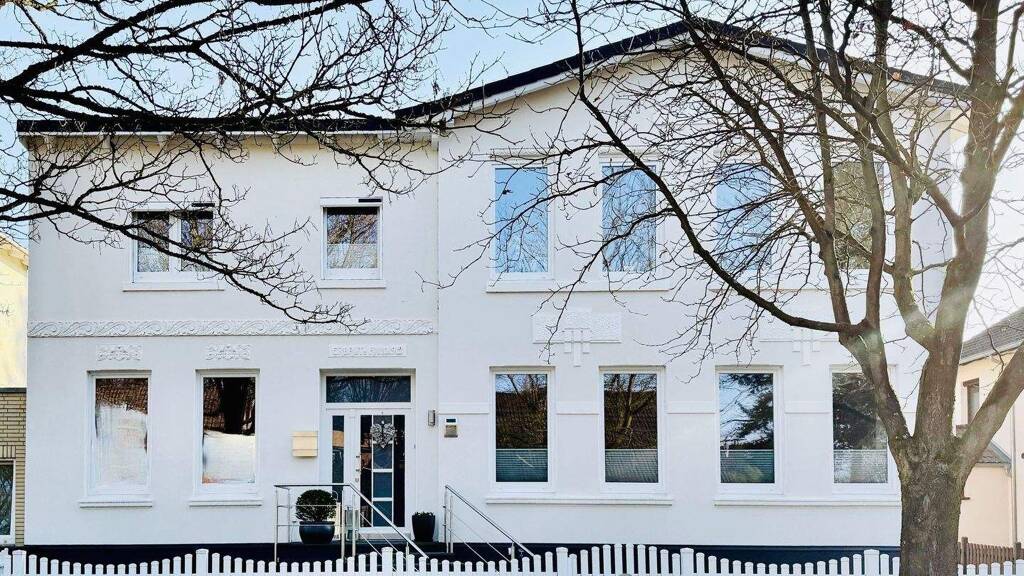 Dieses schöne Domizil mit weiß gestrichener Fassade wurde 1912 in Massivbauweise errichtet und vereint historischen Charme mit modernstem Wohn-Komfort auf geräumigen 216 qm Wohnfläche. Der gemeinsame Flur verbindet die beiden Etagen und schafft so vielseitige Nutzungsmöglichkeiten – ideal für Familien, Mehrgenerationen-Wohnen sowie Wohnen & Arbeiten unter einem Dach oder als attraktive Kapitalanlage.
