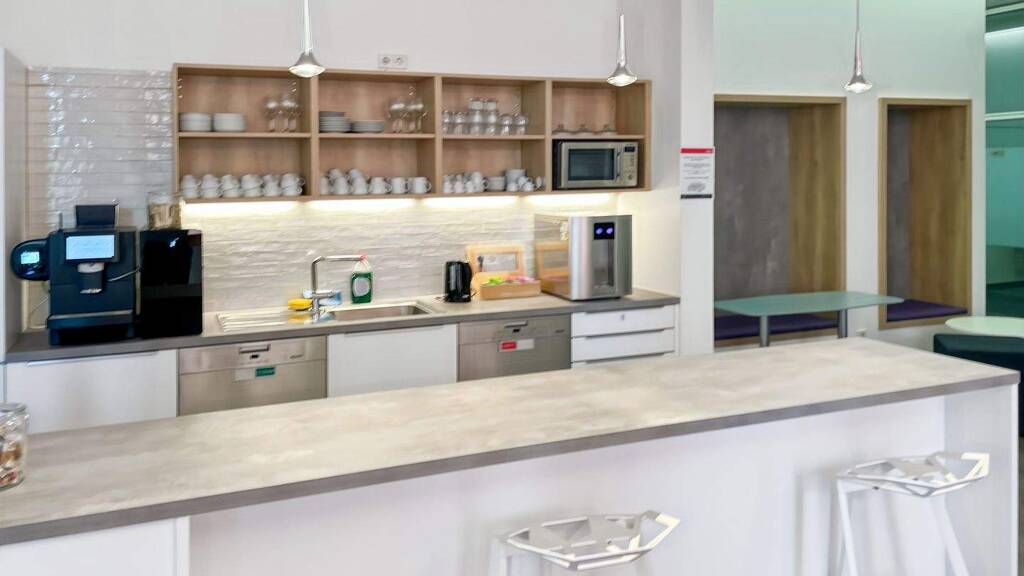 In Park Village, Unterföhring erwarten Sie flexible Büroräume. Nutzen Sie einen der 20 Parkplätze vor Ort und bereiten Sie sich mit frisch gemahlenem Kaffee aus unserem hauseigenen Café auf wichtige Entscheidungen vor. Ziehen Sie sich in unsere ruhigen, privaten Büros zurück oder treffen Sie Kollegen und Kunden in komplett eingerichteten Coworking-Bereichen und modernen Besprechungsräumen. Auf allen Etagen ist Businessclass-WLAN verfügbar. Entdecken Sie nach Feierabend, was Unterföhring ansonsten zu bieten hat. Hier finden Sie Parks, Theater, ein Museum und ein Autokino. Für besondere Anlässe können Sie das 650 m entfernte, fußläufig zu erreichende Restaurant aufsuchen und Ihre Gäste mit lokaler Küche verwöhnen.