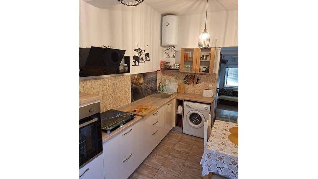 Die Zweizimmerwohnung besteht aus zwei Schlafzimmern, einem Badezimmer, einer Küche mit Esszimmer, einer Speisekammer und einem Wohnzimmer. Es verfügt über eine überdachte Terrasse und einen eigenen Eingang zur Wohnung.