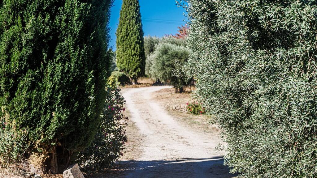 Set amidst vineyards, the house can be discovered after crossing a path lined with 70 olive trees in production. The hectare of vines in the Bandol AOC appellation is the pride of the owners, who can flaunt the fact that they have their own wine, thanks to the collaboration with the well-known neighbouring estate, to whom the cultivation is entrusted.