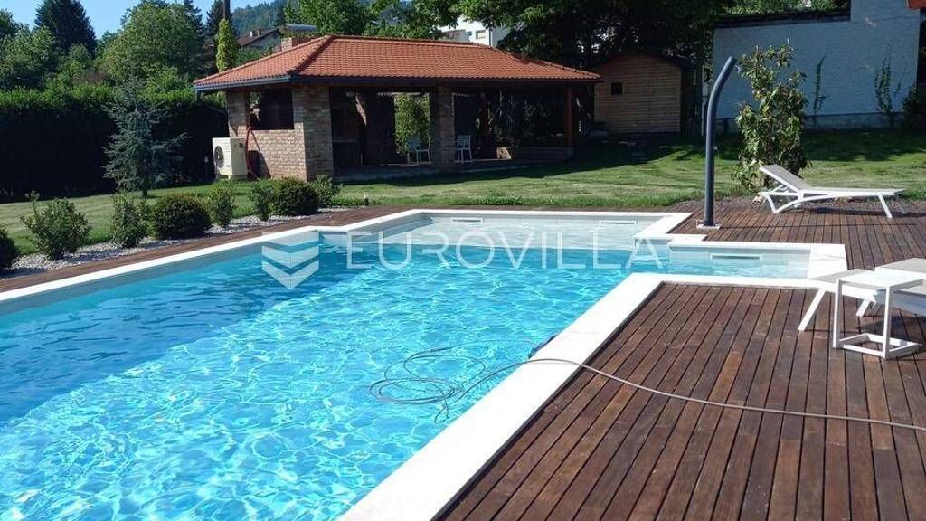 Samobor, luksuzna obiteljska kuca BRP 400 m2 na povrsini parcele od 1.680 m2.Kuca je koncipirana na 3 etaze sastoji se od:Prizemlje: ulaznog hodnika, gostinjskog toaleta, kuhinje, blagovaonice, prostranog dnevnog boravka s izlazom na terasu, teretane, saune te garaze.Kat: pet spavacih soba od kojih su dvije pretvorene u garderobe a jedna u radnu sobu, kupaonica.Drugi kat: Kupaonica i spavaca soba s walk in ormarom.Kuca je napravljena od najkvalitetnijih materijala te opremljena vrhunskim namjestajem. Postavljeni su solari i potpuno novi krov, prizemlje cijelo preuredeno, nova kuhinja.. Stolarija indonezijski hrast-Meranti, Brazilska tikovina Kumaru, rolete na struju, dim svijetla prekidaci, toplinska pumpa, u kuci postoji i plinski bojler.Prostrano i uredeno dvoriste, okucnica i bazen (13x5) grijanje i hladenje, protu strujno plivanje, stvaraju oazu mira i relaksacije, ali i obiteljske aktivnosti na otvorenom. Navodnjavanje cijelog dvorista iz bunara, dva prikljucka za vodu. Sjenica ljetna kuhinja potpuno opremljena, odrzavana hortikultura, Robot kosilica te zasebno spremiste-alatnica.Lokacija u mirnom dijelu Samobora te privatnost u mirnoj ulici, idealno za obiteljski zivot, privatnost daleko od gradske vreve.Ova kuca predstavlja savrsen spoj luksuza, udobnosti te mirnog zivota u prirodi.Ostale informacije na upit.... Vise na eurovilla.hr, ID: 771920