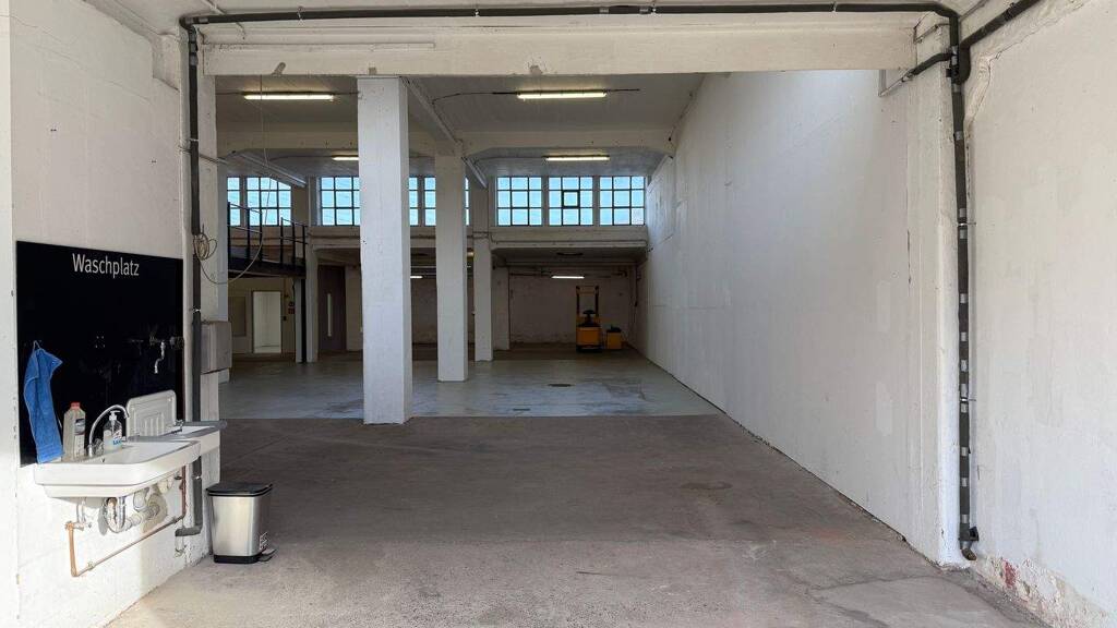 Vermietet wird eine Einheit mit insgesamt ca. 448 m² Fläche. Es handelt sich um eine geräumige Halle für die individuelle Nutzung wie z.B. Lager, Unterstellhalle oder Produktionshalle. Es besteht die Möglichkeit, ein Büro einzurichten. Herren- und Damen-WCs, Küche, Sozialraum und Umkleideraum sind ebenfalls vorhanden. Zahlreiche Fensterflächen sorgen für eine sehr gute Belichtung. Aufgrund der ebenerdigen Zufahrt sowie der Skelettbauweise ist die Halle ideal nutzbar, die Stützen bieten eine gute Raumstruktur und Aufteilungsmöglichkeiten. Ein hochwertiges Gerüststockwerk wurde nachträglich in ca. 1/3 der Halle errichtet und bietet zusätzliche individuelle Nutzungsmöglichkeiten.