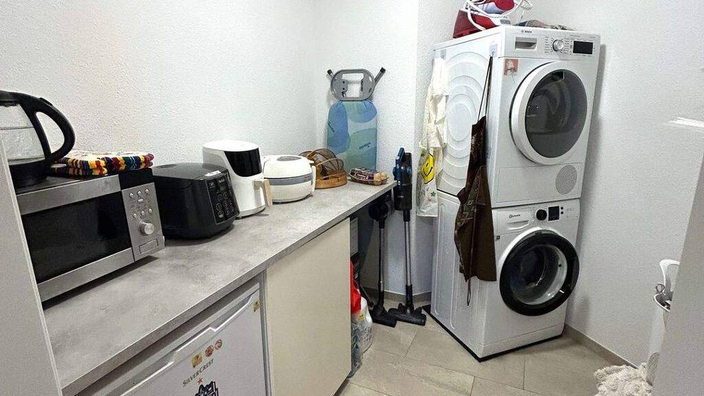 Praktischen Stauraum bieten der Hauswirtschaftsraum (HWR) innerhalb der Wohnung sowie ein eigener Kellerraum. Zur Wohnung gehört außerdem ein zugeordneter Stellplatz, der für 80 € monatlich anzumieten ist.