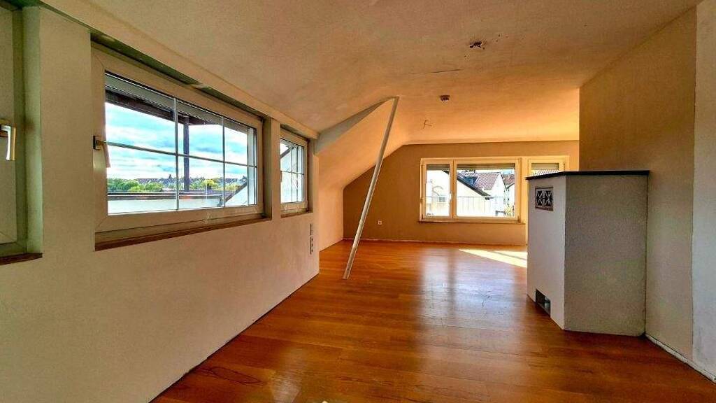 Die angebotene 4-Zimmer-Wohnung erstreckt sich über die gesamte Dachetage eines kleinen Mehrfamilienhauses aus den 1960er Jahren. Das Gebäude selbst befindet sich in einem gepflegten Zustand, instandhaltungen und Modernisierungen werden durchgeführt. Die Wohnung ist bereits frei und kann sofort bezogen oder neu vermietet werden. . Separater, abgeschlossener Treppenaufgang zur Wohnung . Freundlicher Eingangsbereich mit Garderobe und Natursteinboden . Modernes WC mit Waschbecken . Großzügiges Wohnzimmer (ca. 29 m²) mit zwei Lichtseiten und zentral platziertem Kachelofen (Öleinzelofen) . Moderne Einbauküche mit Ceranfeld/Spülmaschine und Einbauschränken . Kinderzimmer (ca. 8 m²) mit Platz für Schrank und Bett . Tageslichtbad mit Dusche, Badewanne, Waschtisch und Waschmaschinenanschluss (ca. 4 m²) . Küche mit vorbereiteten Anschlüssen (ohne Einbauküche, ca. 4,4 m²) . Offenes Esszimmer angrenzend an die Küche (ca. 8 m²) . Schlafzimmer am Giebel (ca. 10,5 m²) . Büro oder Homeoffice (ca. 5,5 m²) . Große, nach Südost ausgerichtete Dachterrasse (ca. 15 m²) mit schönem Blick ins untere Remstal . Eigener Kellerraum . Eigene Garage (separates Grundbuchblatt) + Separater Stellplatz direkt am Haus . Beheizung über Öletagenheizung . Energieausweis: Klasse H, Endenergieverbrauch 286,1 kWh/(m²*a) Diese großzügige Dachgeschosswohnung bietet viel Potenzial - ideal für Eigennutzer, oder als attraktive Kapitalanlage zur Vermietung. Maik Hannemann, Immobilien Dienstleistung Hannemann, Mobil: 0176 - 99 31 99 66