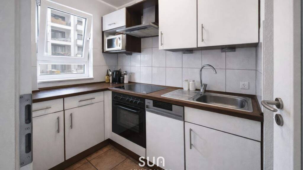 Diese gepflegte 2-Zimmer-Wohnung liegt direkt neben dem Skyline Plaza und bietet ideale Voraussetzungen für ein komfortables, langfristiges Wohnen für eine Person oder ein Paar - einziehen und wohlfühlen.