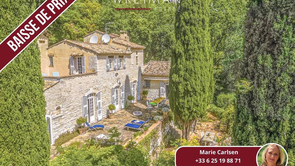 Welcome to "La Ferrage" this very unique and authentic property with lots of charm and traditional Provencal architecture, offers breathtaking panoramic views overlooking the medival village of Tourrettes-sur-Loup, the Mediterranean Sea, Cap d'Antibes and the mountains. As you enter the property on the landscaped garden of 3 hectares with the beautiful stonewalls sheltering 265 olive trees and majestaic cypress trees, you will be captivated by the rustic elegance of the stone facade which perfectly blends with the natural and beautiful surroundings.