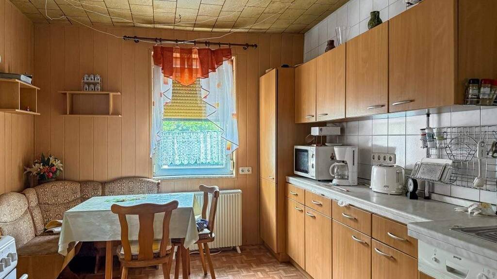 Dieses Einfamilienhaus bietet eine solide Grundstruktur und viel Potenzial zur individuellen Gestaltung. Die Immobilie befindet sich in einem sanierungsbedürftigen Zustand und bedarf umfassender Renovierungsmaßnahmen - ideal für handwerklich Begabte oder Investoren mit Blick für Entwicklungsmöglichkeiten. Die Raumaufteilung ist funktional: Im Erdgeschoss befinden sich ein Wohnzimmer, ein Schlafzimmer, ein Badezimmer sowie eine kompakte Küche. Das Obergeschoss bietet ein großzügiges Wohnzimmer, ein weiteres Schlafzimmer, eine zweite Küche und ein separates WC. Im Dachgeschoss steht eine Bodenkammer als zusätzlicher Stauraum zur Verfügung. Beheizt wird das Gebäude aktuell über Festbrennstofföfen und elektrische Heizgeräte. Ein besonderes Highlight ist das angrenzende Nebengebäude mit integrierter Garage und zusätzlichen Nutzflächen. Dieses Gebäude lässt sich bei Bedarf mit dem Wohnhaus verbinden, wodurch weitere Wohn- oder Arbeitsflächen entstehen können - ideal für eine Erweiterung der Wohnfläche oder die Realisierung eines Mehrgenerationenhauses.
