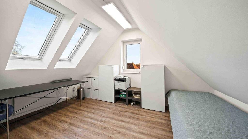 Diese moderne Dachgeschoss-Eigentumswohnung befindet sich in einem gepflegten Mehrfamilienhaus aus dem Baujahr 2020 mit insgesamt vier Wohneinheiten und überzeugt durch ihre zeitgemäße Ausstattung sowie eine durchdachte Raumgestaltung. Die Wohnfläche beträgt ca. 56 m² und wird durch einen ausgebauten Spitzboden sinnvoll ergänzt. Die Wohnung präsentiert sich mit verspachtelten Wänden und einem großzügig geschnittenen Wohn- und Essbereich, in den die offene Einbauküche harmonisch integriert ist. Diese ist ausgestattet mit Ceranfeld, Backofen, Umluftdunstabzugshaube sowie Spül- maschine und bereits im Kaufpreis enthalten. Vom Wohnbereich aus gelangen Sie auf den Balkon in Süd-West-Ausrichtung, der angenehme Sonnenstunden bis in die Abendstunden bietet. Ein Schlafzimmer bietet einen ruhigen Rückzugsort. Das Badezimmer ist modern gestaltet und verfügt über eine ebenerdige Dusche mit Glasabtrennung, Fußbodenheizung sowie einen Außenrollladen. Die Wohnung ist mit einer Zwangsbe- und Entlüftungsanlage ausgestattet und bietet somit ein angenehmes Raumklima. Ergänzt wird die Wohnung durch einen Hauswirtschaftsraum, der zusätzlichen Stauraum und Platz für die Haustechnik bietet. Über eine offene Metalltreppe gelangen Sie in den ausgebauten und gedämmten Spitzboden, der mit zwei Dachfenstern sowie einem Flügelfenster ausgestattet ist. Dieser Bereich wird derzeit als Büro genutzt und eröffnet vielfältige Nutzungsmöglichkeiten, ohne zur offiziellen Wohnfläche zu zählen. Die Steuerung der Heizungsanlage erfolgt über ein Smarthome-System. Ein Glasfaseranschluss ist bereits im Haus verlegt und eine SAT-Anlage ist vorhanden. Die dreifach verglasten Fenster sind mit elektrischen Außenrollläden versehen sowie teilweise mit Fliegengitter und sorgen für eine gute Energieeffizienz und angenehmen Wohnkomfort. Zur Wohnung gehört zudem ein "Biohort"-Abstellraum mit Stromanschluss sowie ein PKW-Stellplatz. Eine Genehmigung der Eigentümer- gemeinschaft, welche aus 8 Parteien besteht, für den Tausch gegen einen größeren Abstellraum liegt bereits vor. Ebenso besteht die Erlaubnis zur Errichtung einer Photovoltaikanlage. Die Einbauküche ist im Kaufpreis enthalten, weiteres Mobiliar kann nach Absprache gegen Aufpreis übernommen werden. Eine gewerbliche Ferienvermietung ist nicht gestattet. Die Wohnung eignet sich ideal sowohl als Erstwohnsitz als auch als Zweitwohnsitz. Insgesamt handelt es sich um eine moderne, gepflegte Wohnung mit solider Ausstattung, klarer Struktur und vielseitigen Nutzungsmöglichkeiten.