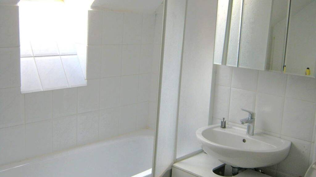 Die Wohnung befindet sich im 2. OG (Dachgeschoss mit hohen Decken) eines gepflegten Mehrfamilienhauses mit nur 5 Wohneinheiten. Die Wohnung verfügt über ein großes, lichtdurchflutetes Wohnzimmer ein gemütliches Schlafzimmer, eine Küche mit Einbauküche sowie ein weiss ausgefliestes Bad. Der Boden des Wohn-Schlafzimmers ist mit einem Laminat ausgelegt. Der Boden der Küche ist mit einem hellen Linoleum ausgelegt. Als eine Besonderheit, gehört zum Haus eine grosse Gartenanlage. Ein Einzelkeller ist vorhanden. Die Wohnung ist zum Teil renovierungsbedürftig.