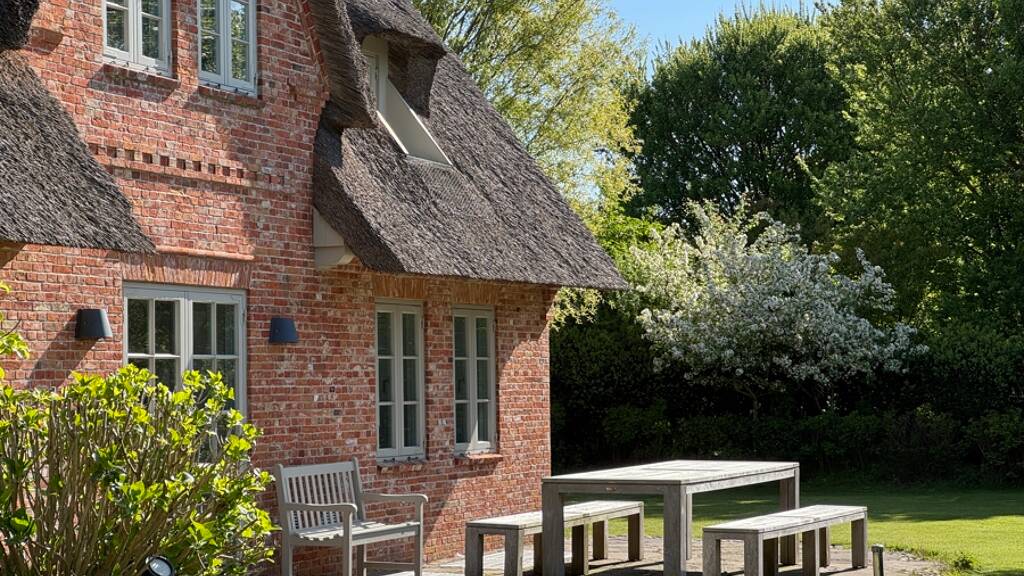Gern stellen wir Ihnen dieses äußerst charmante Anwesen vor. Es befindet sich im begehrten Süden des Ortes Archsum und wurde im Jahr 2006 im traditionellen Friesenstil erbaut. Mit seinem Reetdach, der klassischen Klinkerfassade und den charakteristischen Holzsprossenfenstern fügt es sich perfekt in die ansprechende nachbarschaftliche Umgebung ein.