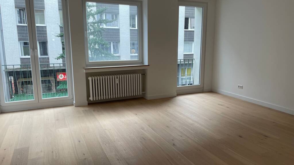 Die angebotene Wohnung wird als Erstbezug nach einer vollständigen Kernsanierung vermietet, d.h. neue Kunststoffisolierglasfenster, Wände und Decken in Glattputzausführung, hochwertig neu ausgebautes Masterbad, Gäste - WC und neu erstelltes Bad zum Hauptschlafzimmer. Das Masterbad ist ausgestattet mit Badewanne. Das Bad zum Hauptschlafzimmer ist ausgestattet mit Dusche und Fenster. In beiden Bädern und dem Gäste - WC wurde als Bodenbelag schwarzer Granit verlegt und an den Wänden großflächige weiße Fliesen. In der großzügigen Wohnküche wurden großflächige graue Feinsteinzeug - Fliesen verlegt. Die Diele und alle Wohn - Schlafräume mit hochwertigem Eichenparkett ausgestattet. Von der großzügigen Diele aus erreichen Sie alle Wohn - Schlafräume, die Küche, Masterbad und das Gäste - WC. Alle Decken und Wände sind in Glattputzausführung und weiß gestrichen.